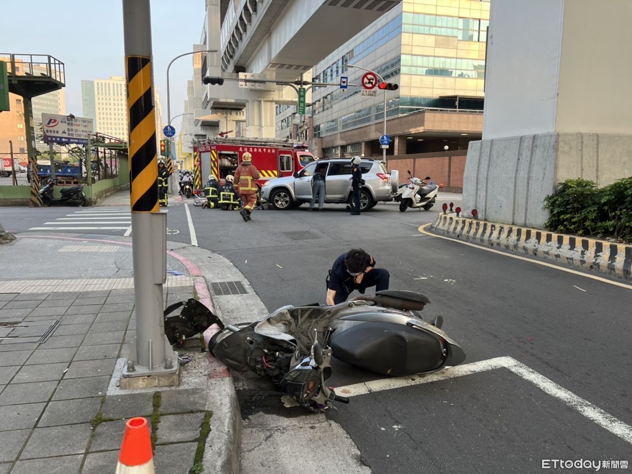 ▲騎士摔至休旅車底送醫。(圖/記者游宗樺翻攝)