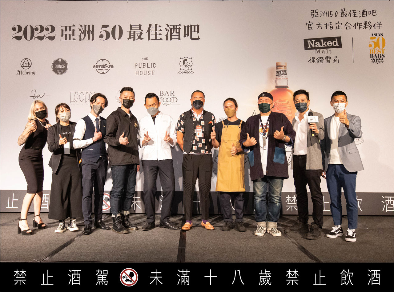 「裸鑽雪莉(Naked Malt)」「世界/亞洲50最佳酒吧官方威士忌合作夥伴,非常榮幸恭喜Indulge Experimental Bistro(6)、AHA Salon (24) 以優異表現連續入選2022 亞洲50最佳酒吧,更開心的是,在台灣調酒界蓬勃發展下,此次入選亞洲百大酒吧名單中,包含常勝軍:Room by Le Kief (51)、The Public House(68)、、Bar Mood(89),更有HiBoRu(86)、MoonRock(91)新血加入。除了百大榜單外,Bar Mood 更獲選最佳永續酒吧特殊獎項。
