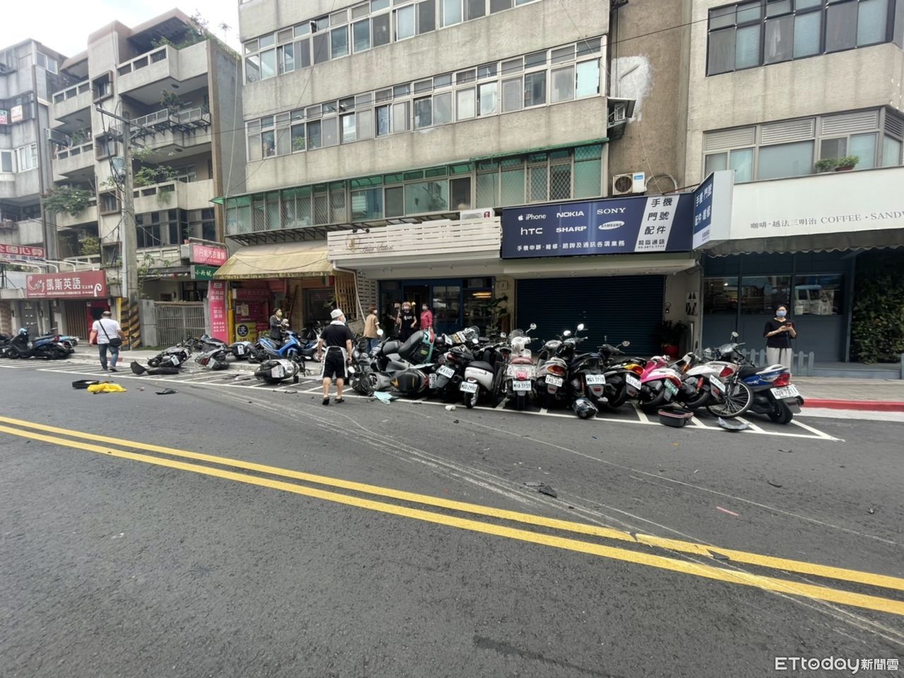 警方調查,55歲的陳姓貨車駕駛,30日上午11時許,開車行經士林區天玉街,在天母國小旁準備迴轉時,突然整台車衝撞停放在路邊的35台機車,整排機車宛如打保齡球般全倒,甚至還有的被撞的支離破碎。