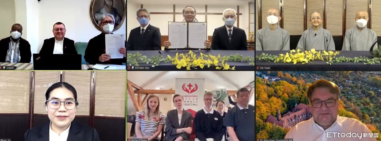 為擴大對烏克蘭難民的援助,佛教慈濟慈善事業基金會與天主教靈醫會國際醫療暨災難服務委員會(Camillian Disaster Service International,簡稱CADIS)4月30日簽約,預計共同在波蘭、烏克蘭投入包含提供食品和必需品、現值卡、醫療服務、安置收容所、心理以及技能輔導等人道援助,預計幫助超過4萬人次。簽約儀式中,天主教靈醫會神父、靜思精舍法師帶領位於台灣、波蘭、義大利羅馬三地視訊與會者共同祈禱,祈願戰事停歇、天下無災難。