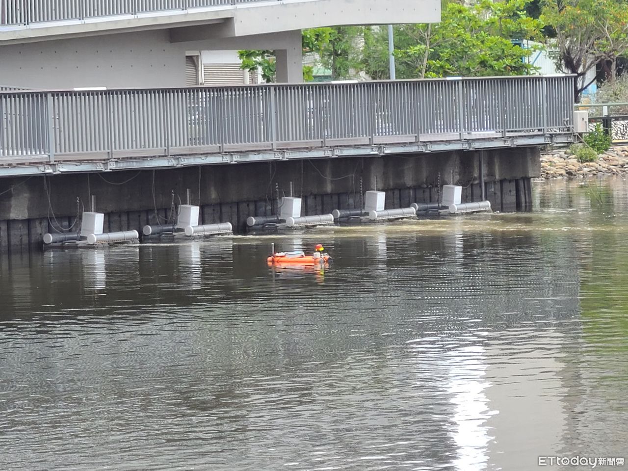 ▲第一條會呼吸的運河在台南,民生截流站設置「遠端智控微氣泡溶氧系統」,提高運河含氧量改善水質,提供魚群穩定生活空間。(圖/記者林悅翻攝,下同)