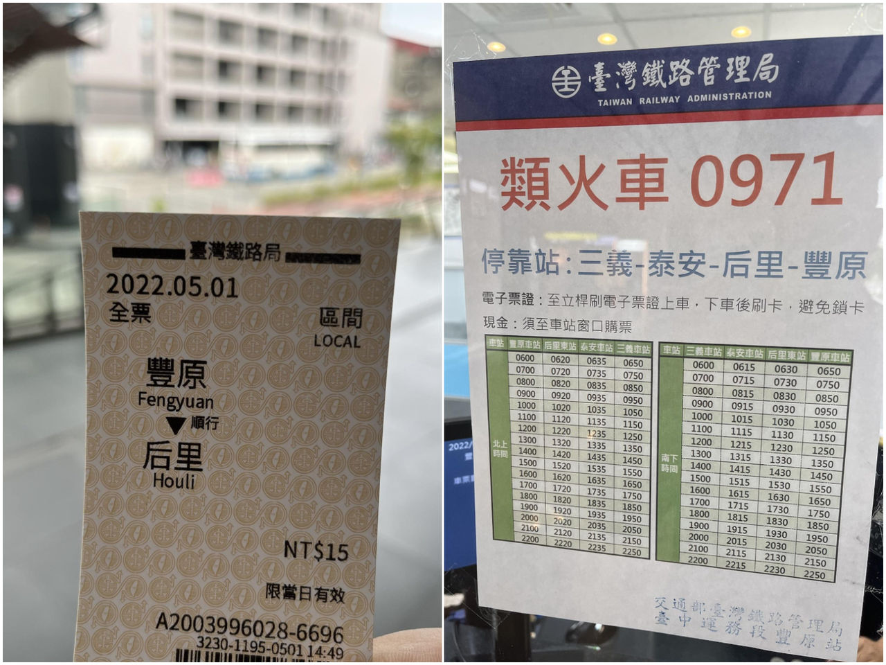 而原本預計要再搭一次,因為看到站務員都同個人,還很熱情的歡迎他們拍照、指引出口方向,「恥力不夠我們走出站再買票回來搭,就走出去搭后里往豐原的公車了,結束一趟有趣的小旅程。」