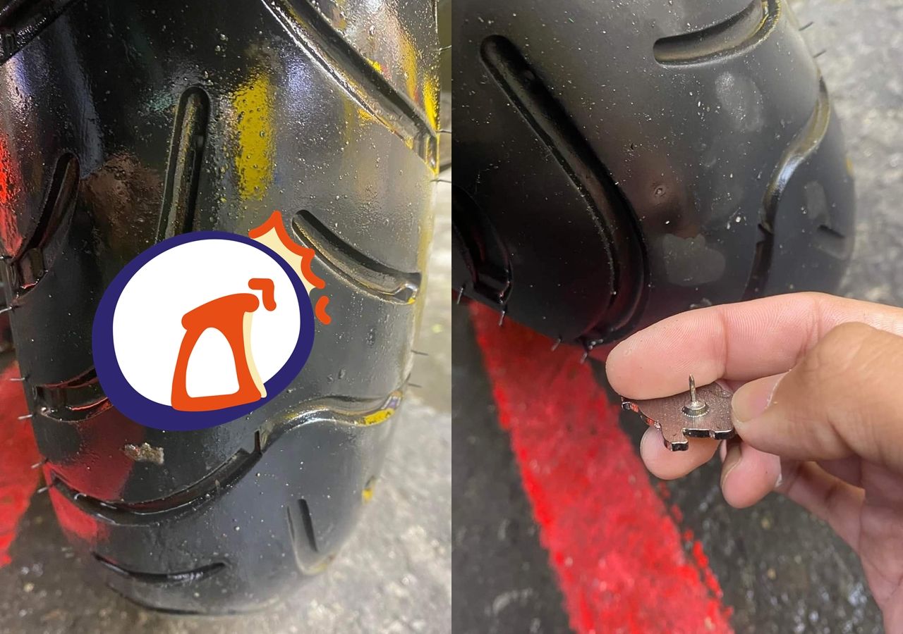不論騎車還是開車,上路前一定要檢查車況。一名網友在臉書社團「爆廢公社」抱怨,他日前雨天騎車出門,結果在檢查輪胎時,發現輪胎被一個別針刺入,而且別針的圖案還對他「比中指」,照片一出立刻引發網友熱議。