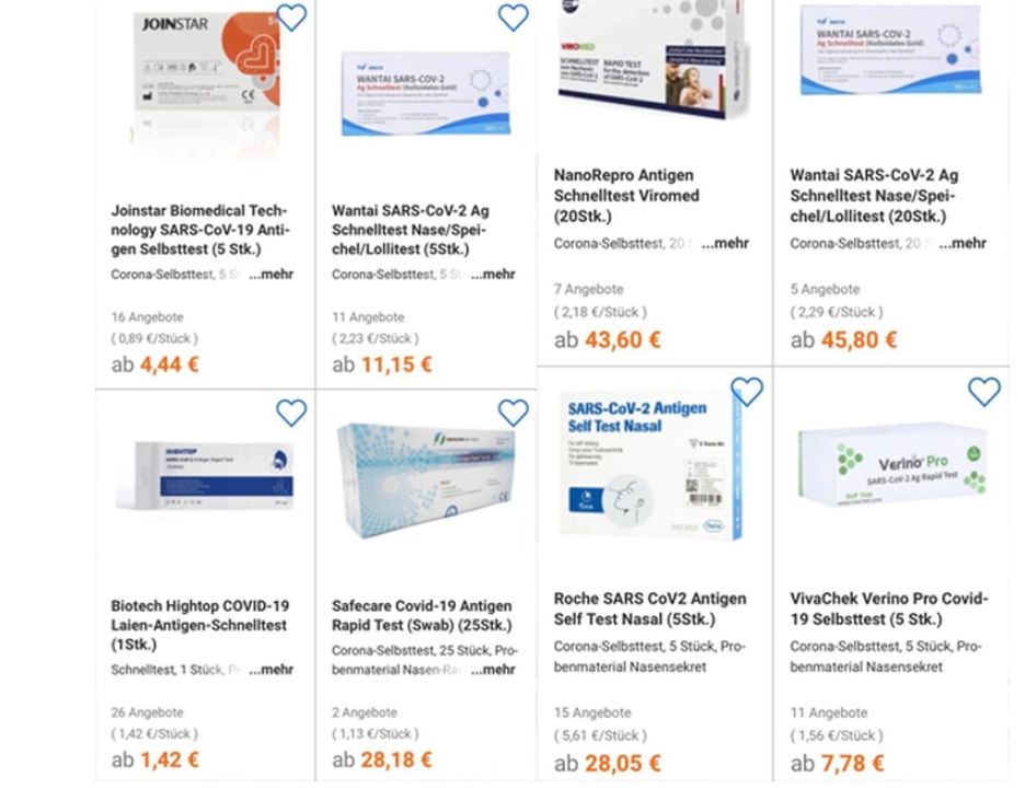 ▲在德國工作的藥師,分享德國網站上各家快篩試劑的價格比較。(圖/翻攝自Facebook/德國藥吃了沒?- 菜鳥藥師聊德國)