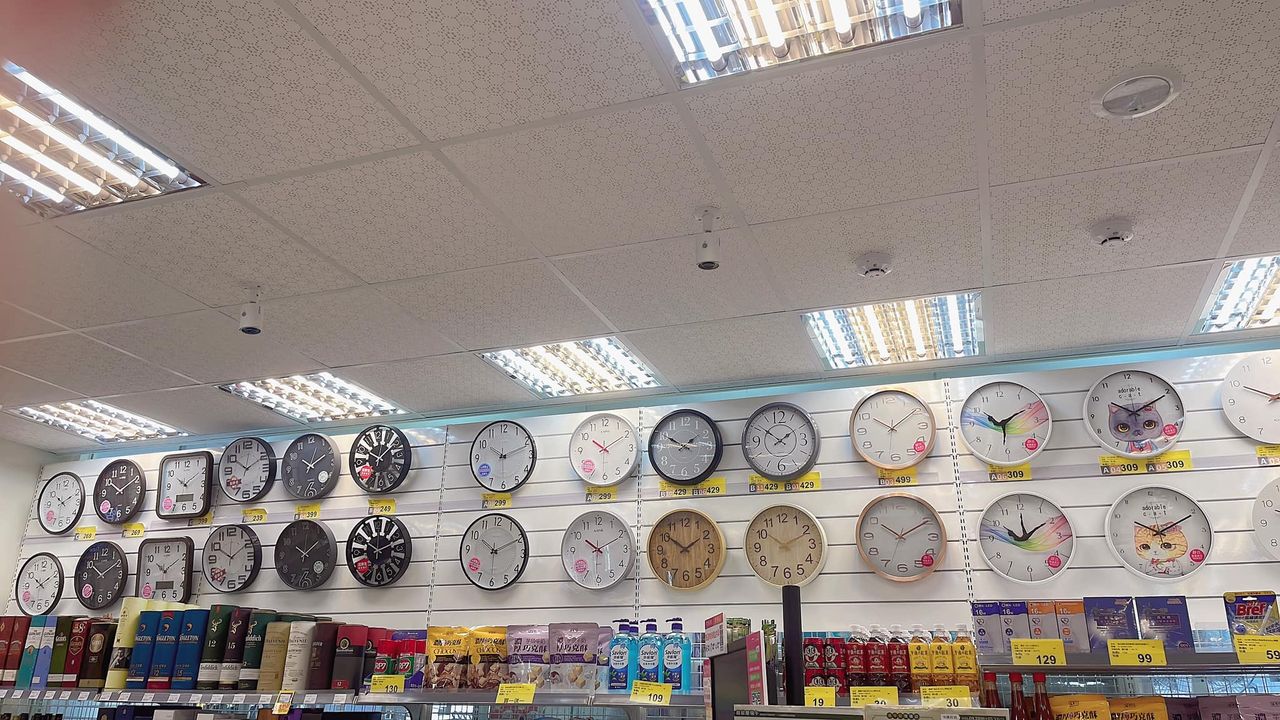 一名網友在臉書社團「爆廢公社」分享一張賣場內部照片,可以看見牆面上掛著各色時鐘,特別的是時鐘的指針幾乎都統一調整到10點10分,或是1點50分,讓她忍不住驚呼「魔鬼就藏在細節裡」。
