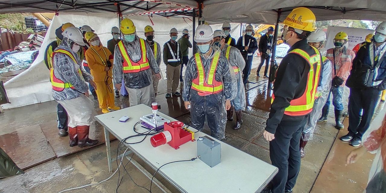 ▲交通部次長胡湘麟今天視察台鐵福隆地錨邊坡工程及電子輔助瞭望員示範。(圖/交通部提供)
