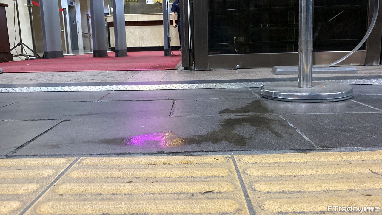▲許男與吳女因800萬元債務,雙方友人在台北地檢署門口大打出手甚至出刀砍人,地面留下斑斑血跡。(圖/記者游宗樺攝)