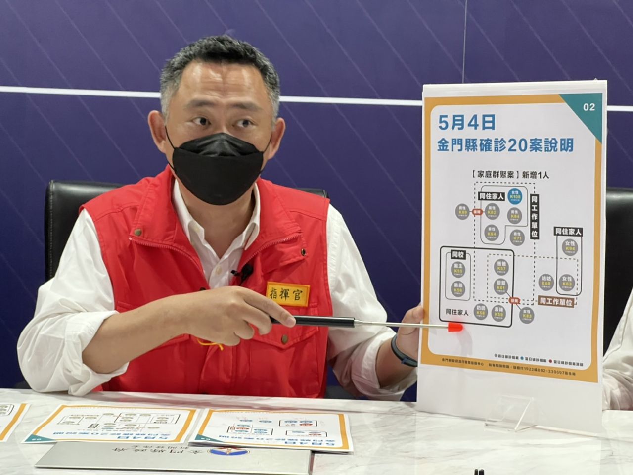金門今新增本土20例,主要案例第一起(K99、K101)為昨(3)日公布K96、K97、K98的同住家人;第二起(K105、K106)為昨(3)日K95的同住家人;第三起K104、K109、K112、K113)為職場群聚案例;第四起(K102、K111、K114)為同住家人群聚;第五例(K115-K117)為同住家人群聚。其中,居隔期間陰轉陽者5人。