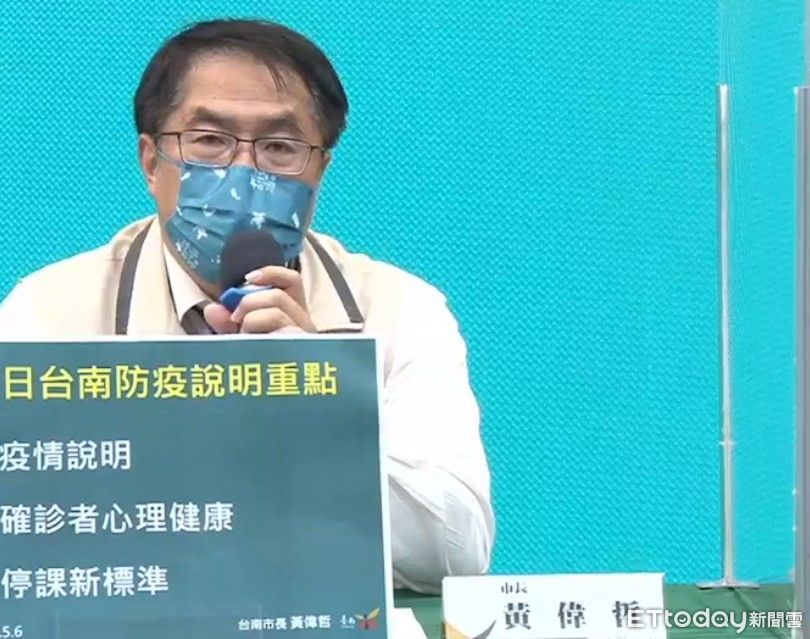 ▲台南市長黃偉哲公布台南新增922人確診病例,為國三會考防疫需求,5月14日起至20日全面改線上教學。(圖/記者林悅翻攝,下同)