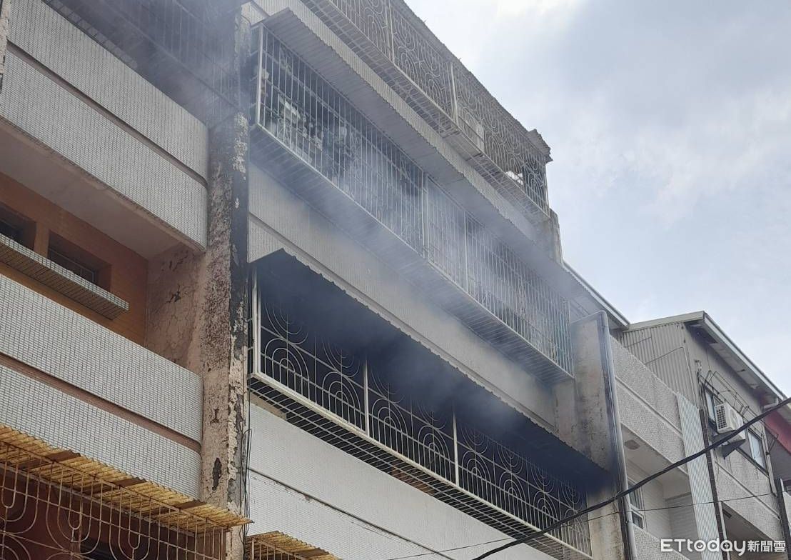 ▲台南市東區裕農路726巷2弄1處4樓公寓,6日下午發生住宅火警,消防人員迅速滅火,並救出1名全身35%2度灼傷傷者,以救護車送成大醫院救治。(圖/記者林悅翻攝,下同)