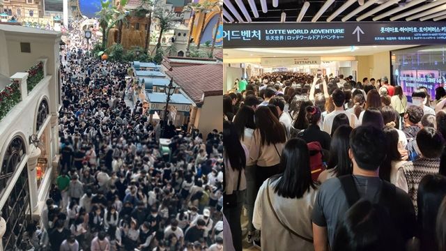 ▲南韓首爾樂天世界遊樂園擠滿「報復出遊」的旅客。(圖/翻攝自推特,下同)