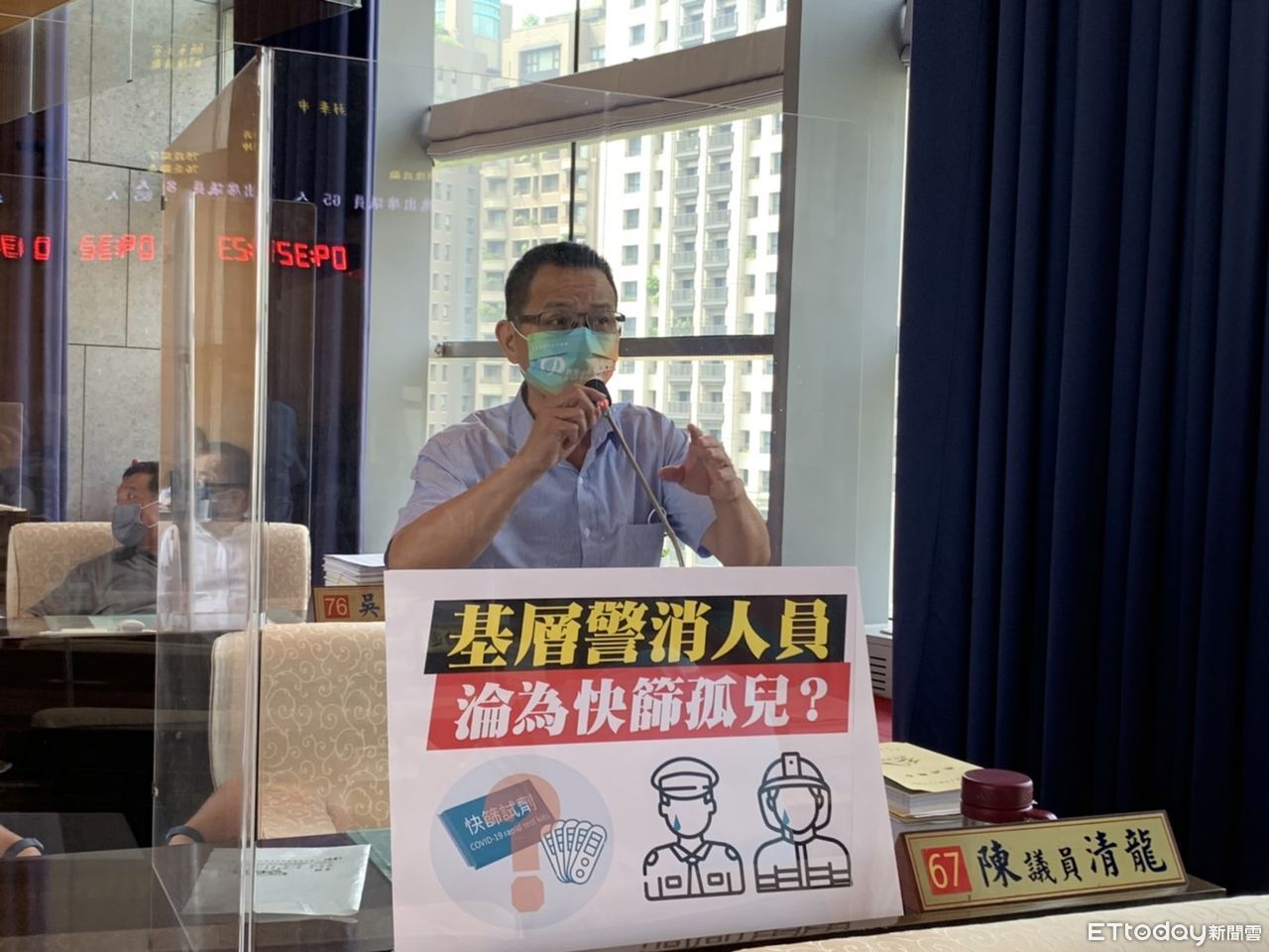 陳清龍10日在市議會質詢時,表示日前陸續接獲消防員、警員陳情指出,現在感染Omicron多是無症狀、輕症,因每天要接觸不同民眾,很擔心自己遭傳染又不知情,再傳染給家人或親友,但服務單位至今都沒有提供快篩,只好自己去排隊買實名制快篩,或掏腰包買較貴的快篩,無奈道:「市府沒為基層值勤風險設想,引發不滿且士氣低落。」