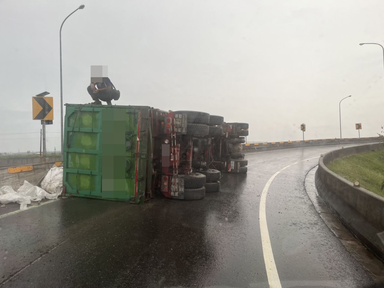 ▲台南台84接台61南下環道貨櫃車翻覆。(圖/翻攝記者爆料網,下同)
