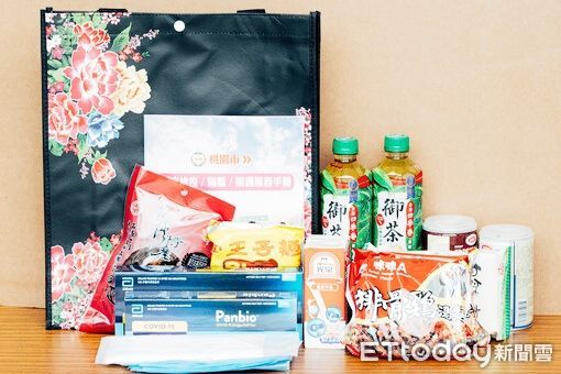 ▲桃園市長「防疫關懷包快易通」今天同步發放,圖為防疫關懷包內容包括5劑快篩試劑在內等生活物資。(圖/記者沈繼昌翻攝)