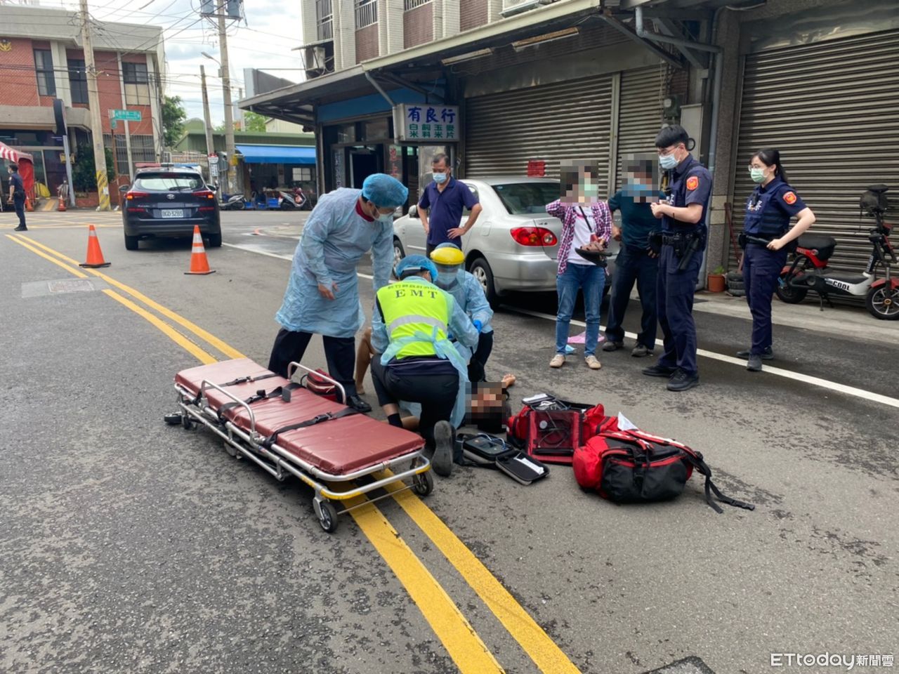 ▲翁姓男子與太太步行至市場購物,行經新豐消防分隊前時突然倒地,被消防隊上的一名救護教官許家瑋救回一條命。消防隊前倒地 EMTP秒救回(圖/記者陳凱力翻攝,下同)