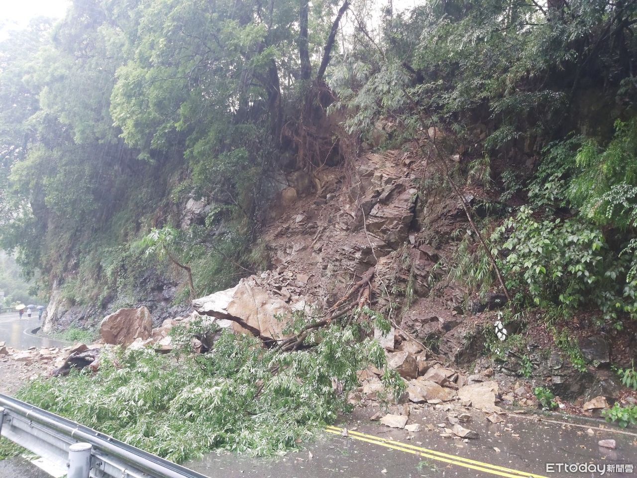 ▲因連日大雨,台中谷關台8線31K大片土石坍塌擋路,目前單線雙向通車中。(圖/記者鄧木卿翻攝,下同)