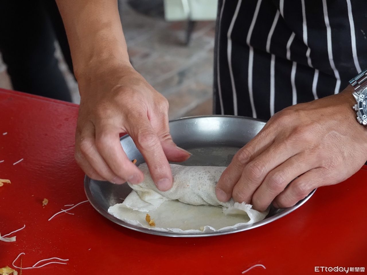 ▲方俊生老師說,大陳春捲的包料雖然豐富,但餅皮才是美味的重點。