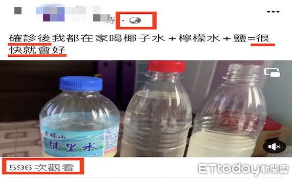 ▲台南市環保局王姓員工被民眾檢舉指控涉嫌在臉書發布「確診後我都在家喝椰子水+檸檬水+鹽=很快就會好」未被主管機關發布查證屬實的訊息,衛生局表示會依法嚴查。(圖/民眾提供、記者林悅翻攝,下同)