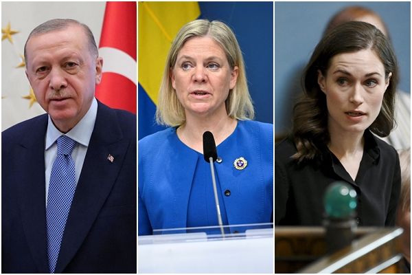 ▲土耳其公開反對瑞典與芬蘭加入北約。左起為土耳其總統艾爾段(Recep Tayyip Erdogan)、瑞典總理安德森(Magdalena Andersson)與芬蘭總理馬林(Sanna Marin)。(組圖/路透)