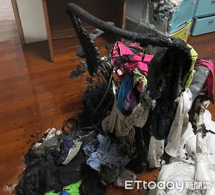 ▲吹風機吹乾衣物險釀大火。(圖/記者楊漢聲翻攝)