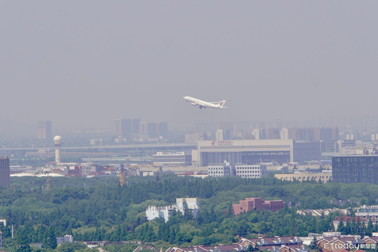 ▼很多民眾看到飛向上海虹橋機場準備降落的東航客機。(圖/記者趙禕攝)