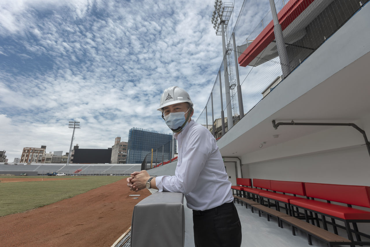 林智堅視察市立棒球場工程進度,分別體驗觀眾席、VIP室與頂樓的觀賽視野,開箱全台球場第三大的LED全彩大螢幕。市立棒球場目前已完成草皮、球場防護網、防撞墊、自動噴灌等工程,待細部傢俱、環場LED及外觀立招完成,相約市民朋友7月一起進場看球。