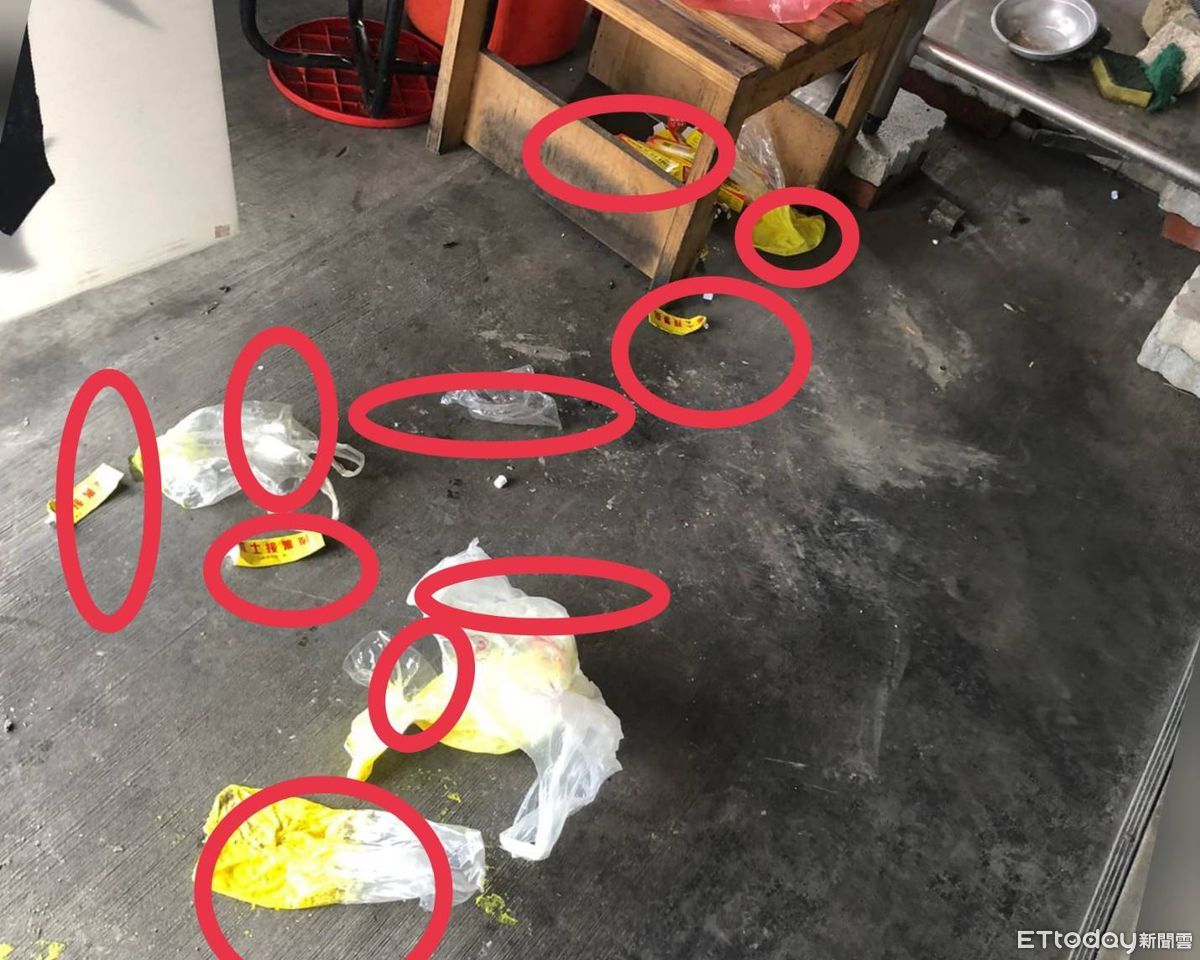 ▲小吃店前被丟滿吸食過的強力膠。(圖/翻攝自臉書/我是田尾人(花的故鄉))