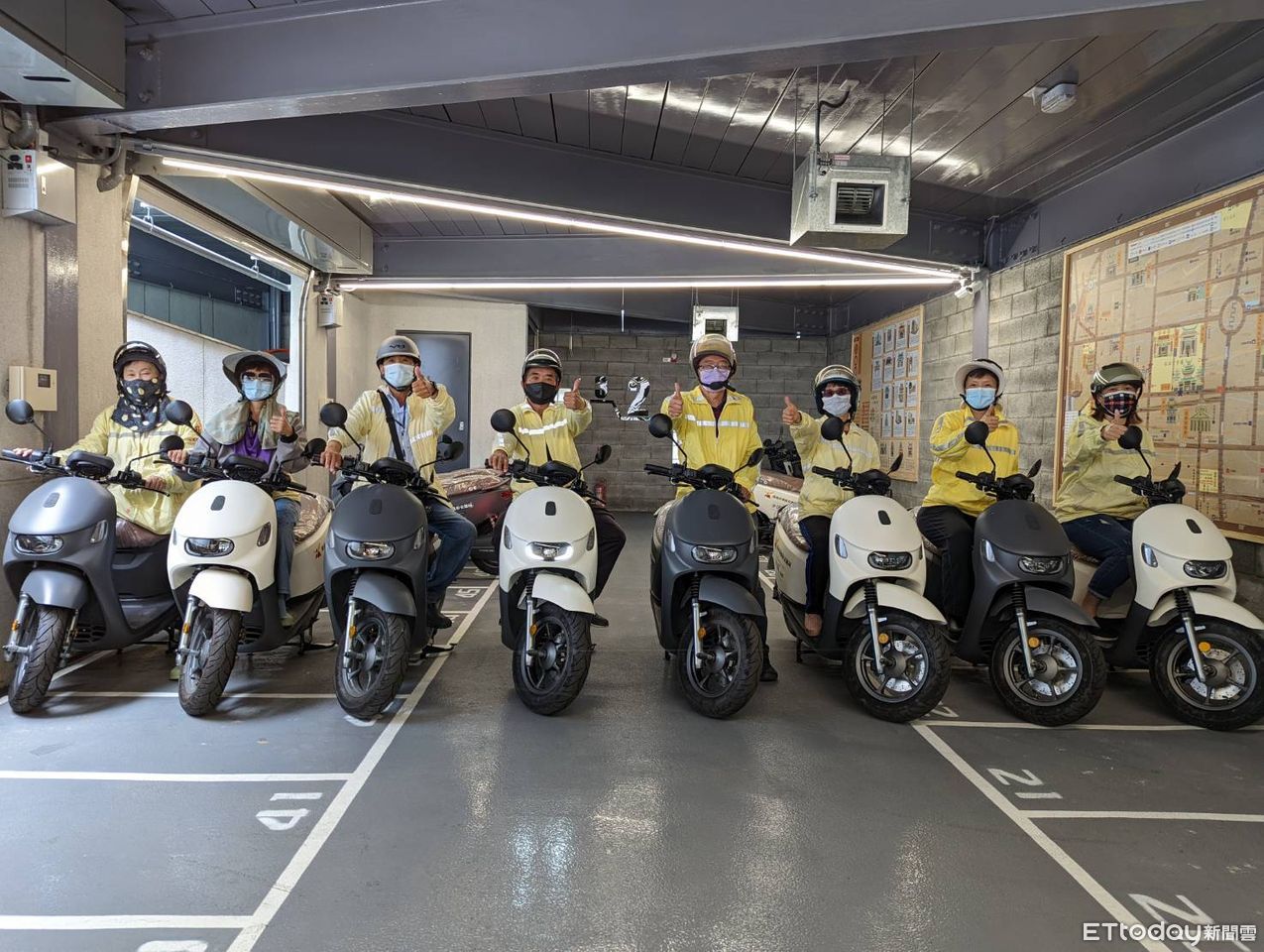 ▲民間企業捐贈交通局28輛電動機車已全數配發停車收費員上線執勤使用,大幅減少收費員巡場開單的碳排放量。(圖/記者林悅翻攝)
