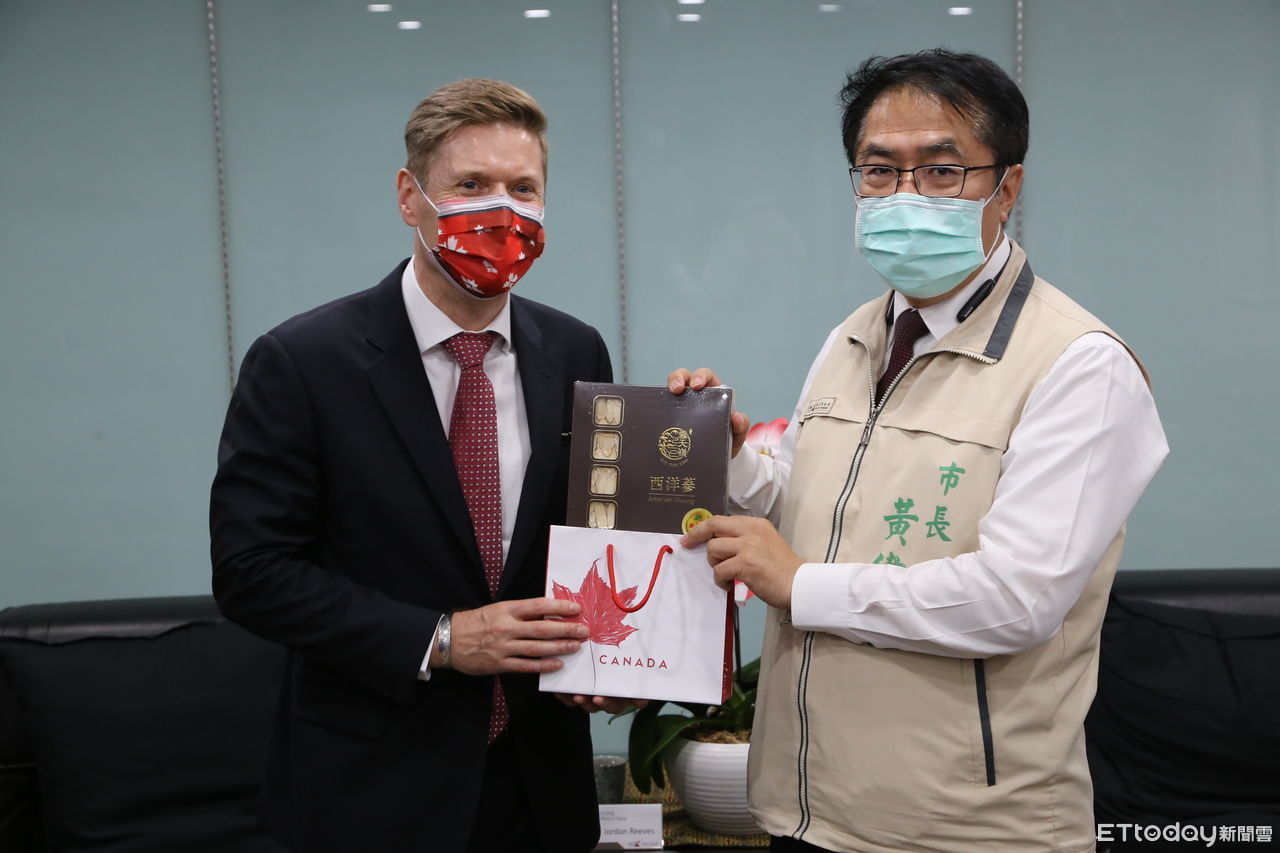 ▲加拿大駐台北貿易辦事處代表芮喬丹及資深商務經理施仲玲,拜會台南市長黃偉哲,雙方於會中就國際教育交流進行深入討論。(圖/記者林悅翻攝,下同)