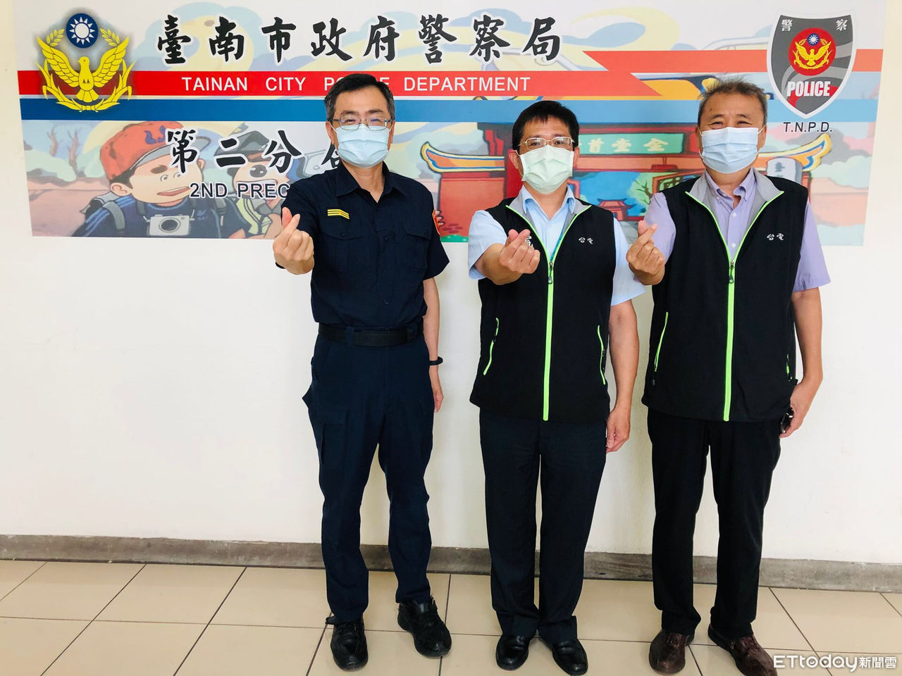 ▲台南區處處長許墩貴(中)、台南區處業務副處長劉詩亮(右),至台南市警二分局拜訪朱信憲分局長表達感謝。(圖/記者林悅翻攝,下同)