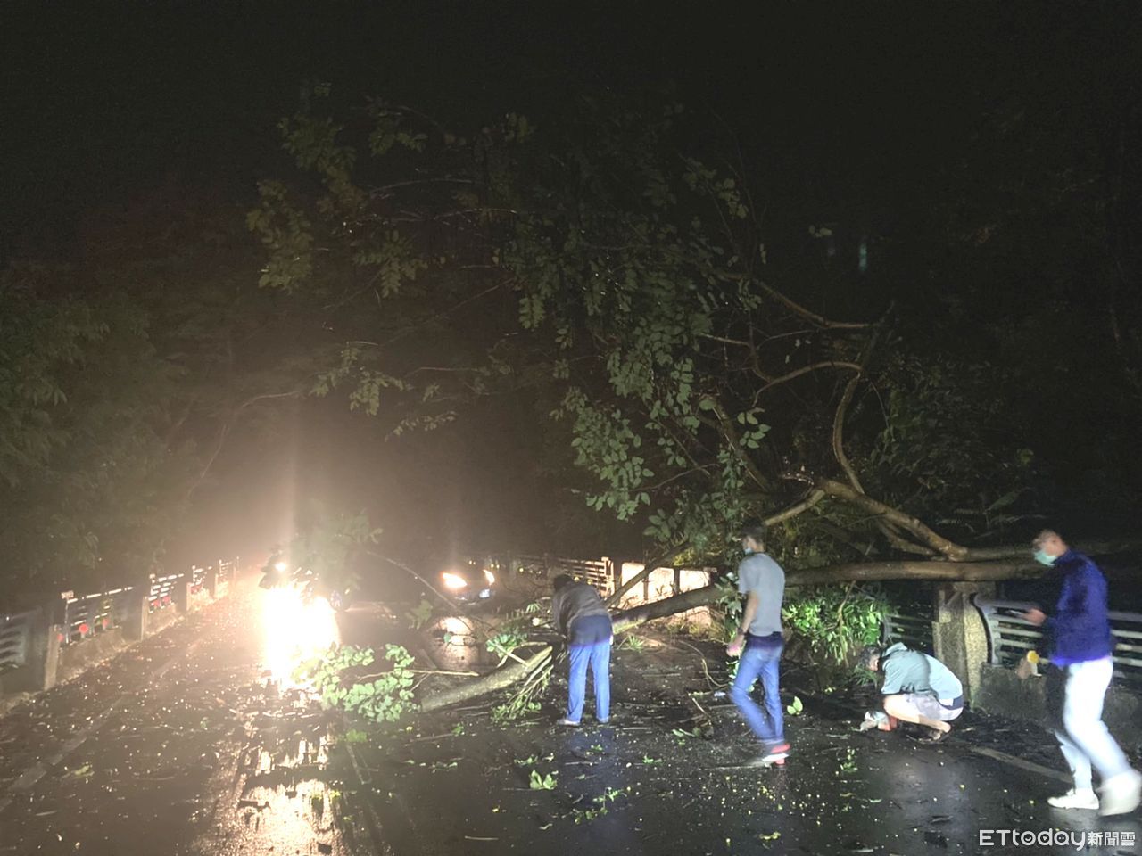 林員立即於現場指揮疏導並開啟巡邏車警示燈示警以防事故發生,路過民眾亦熱心地持電鋸將路樹支解以便移至路邊,警民合力,很快移除路樹,讓交通恢復順暢。