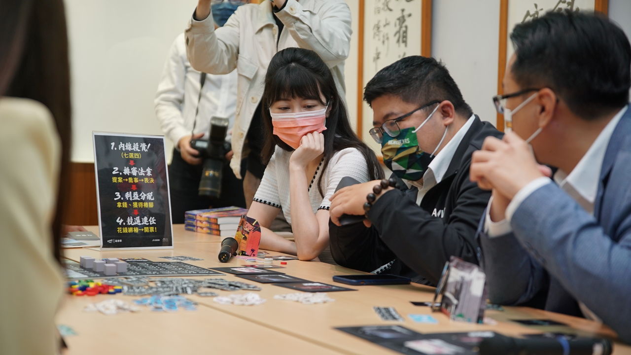 專門諷刺台灣政治的「美麗島風雲」系列桌遊,如今又推出最新的作品「社會事」,讓玩家扮演剛上任的民代,背後是各方金主的支持。民進黨立委高嘉瑜、蔡易餘、台灣基進前立委陳柏惟等人20日參與桌遊發表試玩會,高嘉瑜投資「八大產業」,陳柏惟則代表「宮廟勢力」,多方廝殺透過談判、結派與賄賂,積極競選議員寶座。