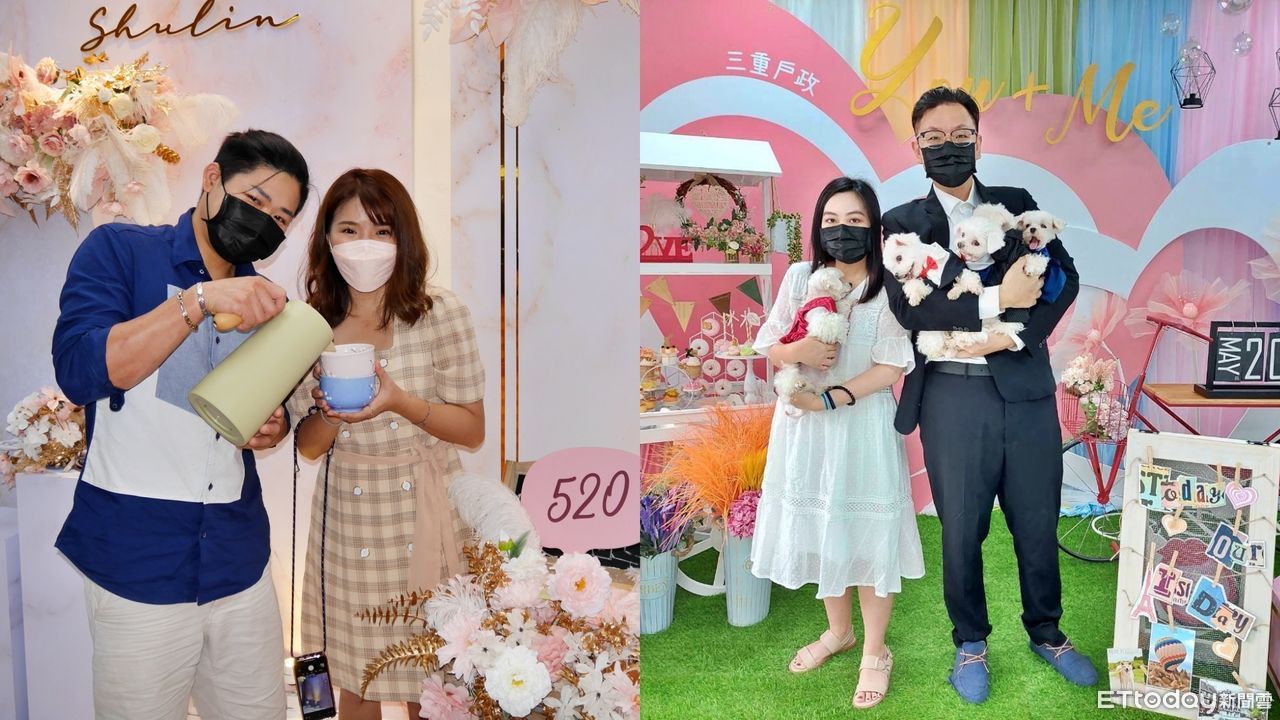 另外,在新莊戶所登記的徐小姐與黃先生,交往中黃先生對徐小姐就像個「YES MAN」,黃小姐說,只要是黃先生答應過的事情都會一一去實踐,也會愛屋及烏,讓她很有安全感。黃先生還秘密跟她的好姊妹們策劃一場求婚,在KTV歌唱到一半,螢幕播放著兩人交往的點點滴滴,讓她驚喜萬分,兩人決定520為結婚紀念日,讓「我愛你」的甜蜜延續到婚後每個日子。