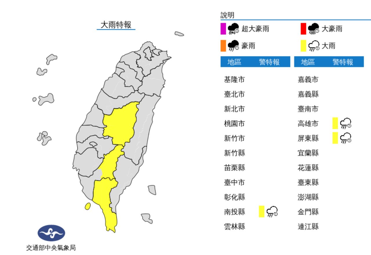 ▲氣象局發布大雨特報。(圖/氣象局)