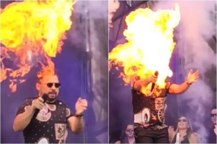 巴西40歲歌手贊德(Xand Avião)21日登上舞台演出,但正當他熱唱到一半靠近舞台前方時,煙霧機突然出現異常故障,直接朝他的臉部噴出烈焰,燒向他的手臂。