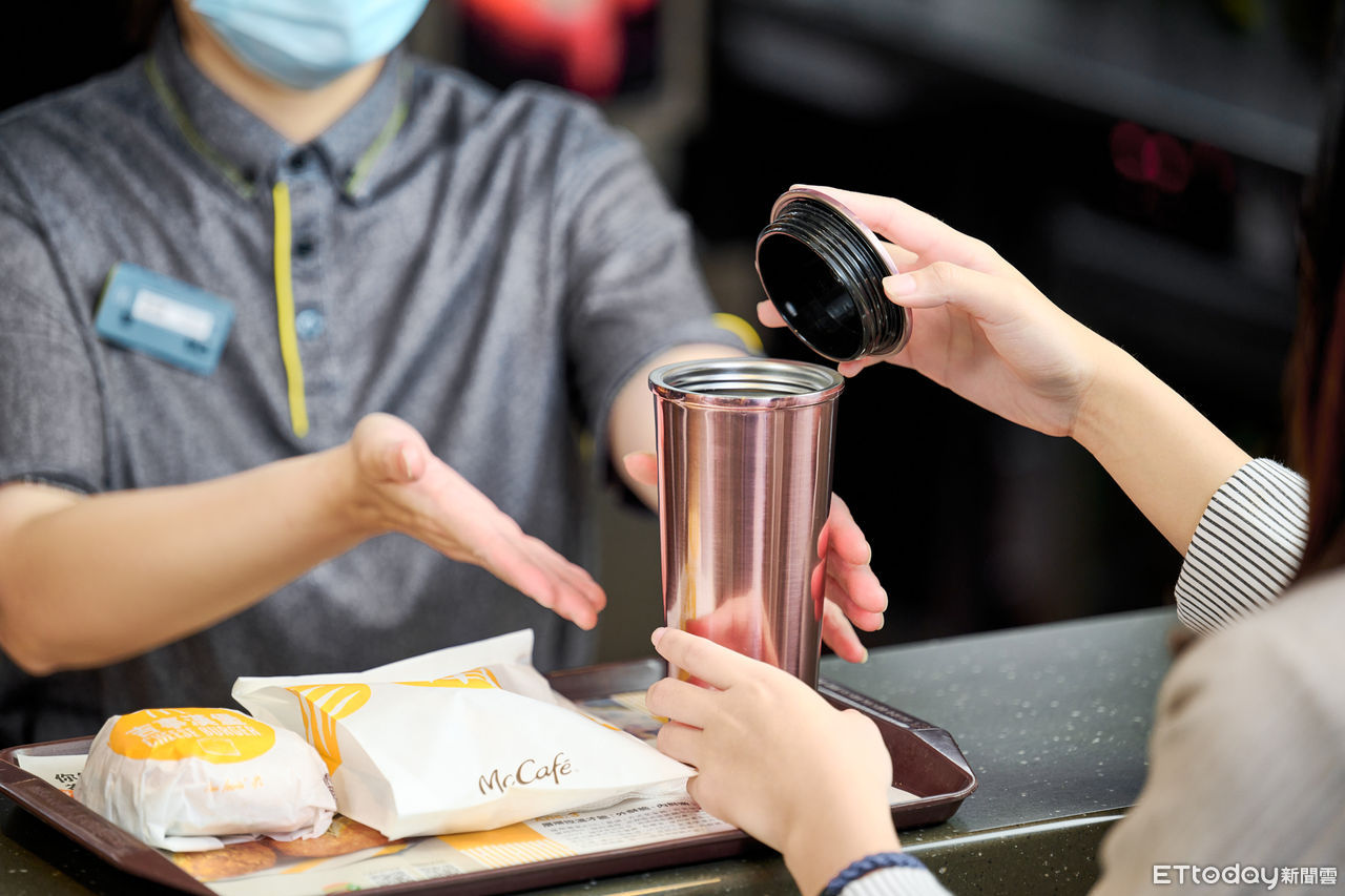 搶先全台通路,麥當勞今(26)日宣布全門市6月1日起正式開放「自備環保杯折5元」優惠,且無論大中小杯通通有,凡消費者於門市櫃檯、得來速點餐時須提前告知店員有自備飲料杯,再經由確認杯子材質、尺寸後無誤後即可進行折抵,而消費者則須提供清洗過(不含杯蓋)的乾淨杯子給門市人員,裝好飲料後再由消費者自行蓋上杯蓋。