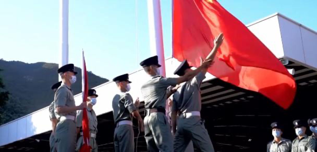 回顧去年4月15日,「香港國安法」實施後的第一個全民國家安全教育日。當時香港警察學院舉辦開放日活動,活動中香港警隊首次公開表演解放軍隊列,口令也改成粵語。