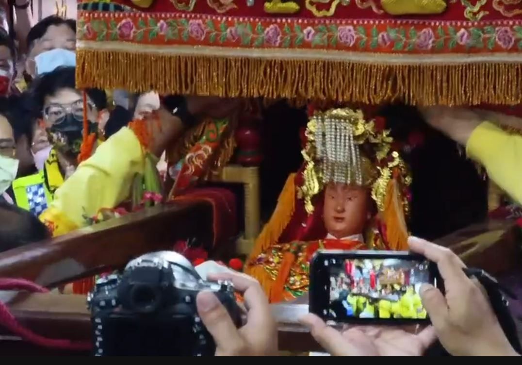 ▲在大批信徒歡呼簇擁下,將媽祖金身接駕回宮。(圖/地方中心翻攝,下同)