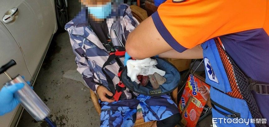 ▲47歲吳姓男子,操作砂輪機切割物品,因操作不慎造成左手掌棉質手套,被砂輪機割傷絞住動彈不得,消防人員立即運用器材協助脫困送醫。(圖/民眾提供,下同)