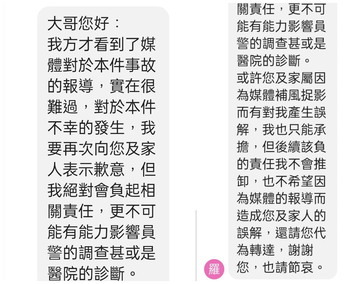 【羅偉瑞向家屬道歉簡訊】