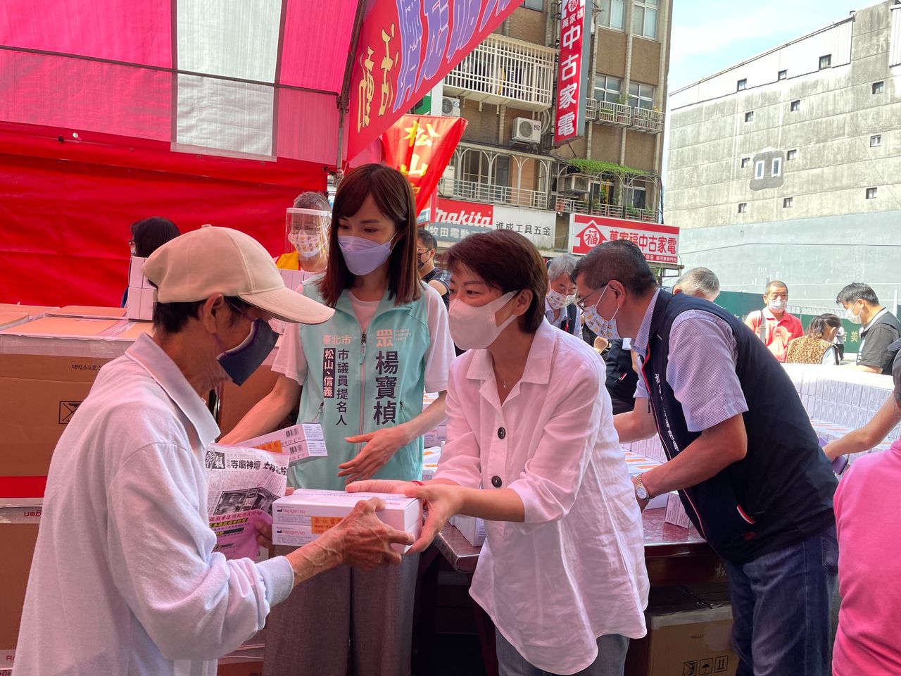 ▲台北市副市長黃珊珊受邀「松山霞海城隍廟發送快篩試劑」活動。(圖/台北市政府提供)