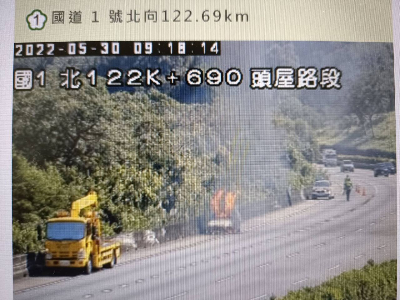 記者陳韻如/苗栗報導國道一號南下122K苗栗頭屋段30日上午發生火燒車意外!現場一輛轎車燃起熊熊烈火,濃煙不斷竄出,所幸駕駛及時逃生,無人員受困。警消獲報趕抵現場,緊急灑水灌救,至於詳細起火原因仍待調查釐清。