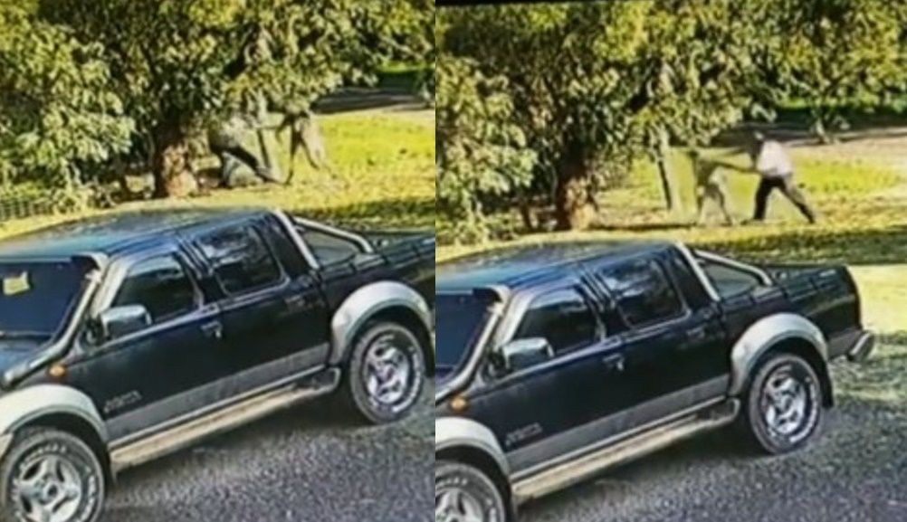 ▲男子被拍到,和袋鼠互相揮拳上演街頭格鬥。(圖/翻攝自Twitter)