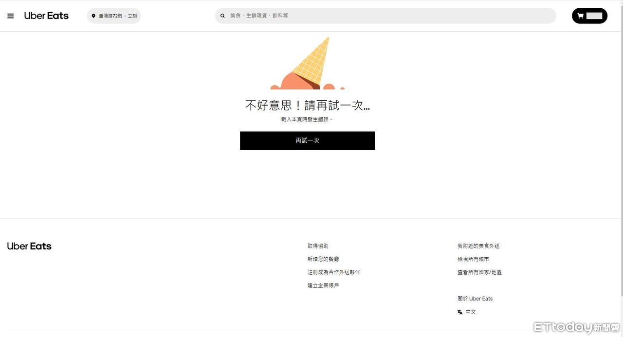 ▲網頁版壞了!(圖/翻攝自Uber Eats)