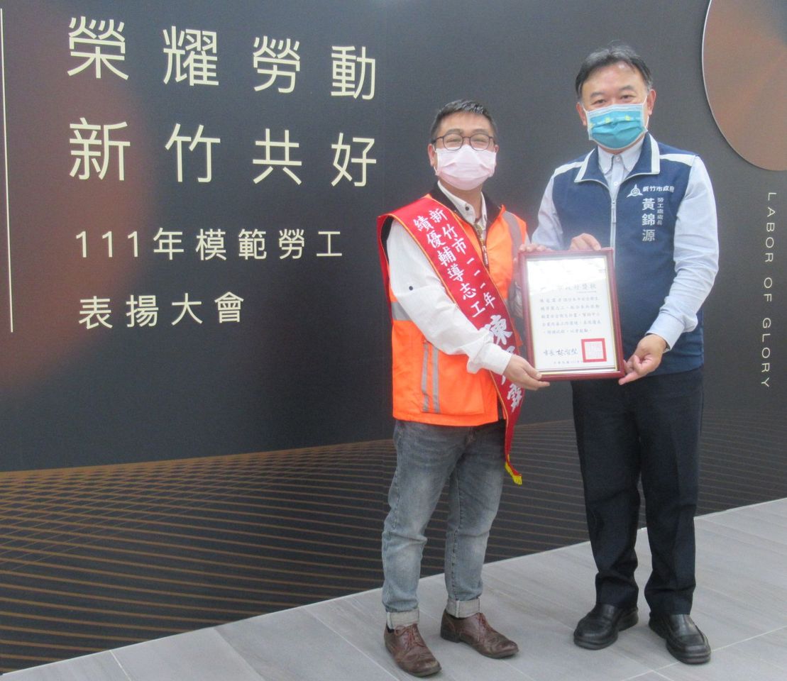 新竹市政府今(111)年表揚職業安全衛生專業志工陳冠霖、黃正裕及曾文釗等3人,市府感謝志工群多年來將職業安全衛生種子散播至各職場,表現優異,也呼籲更多熱血的專業志工投入輔導團,協助打造勞工零職災的幸福城市。