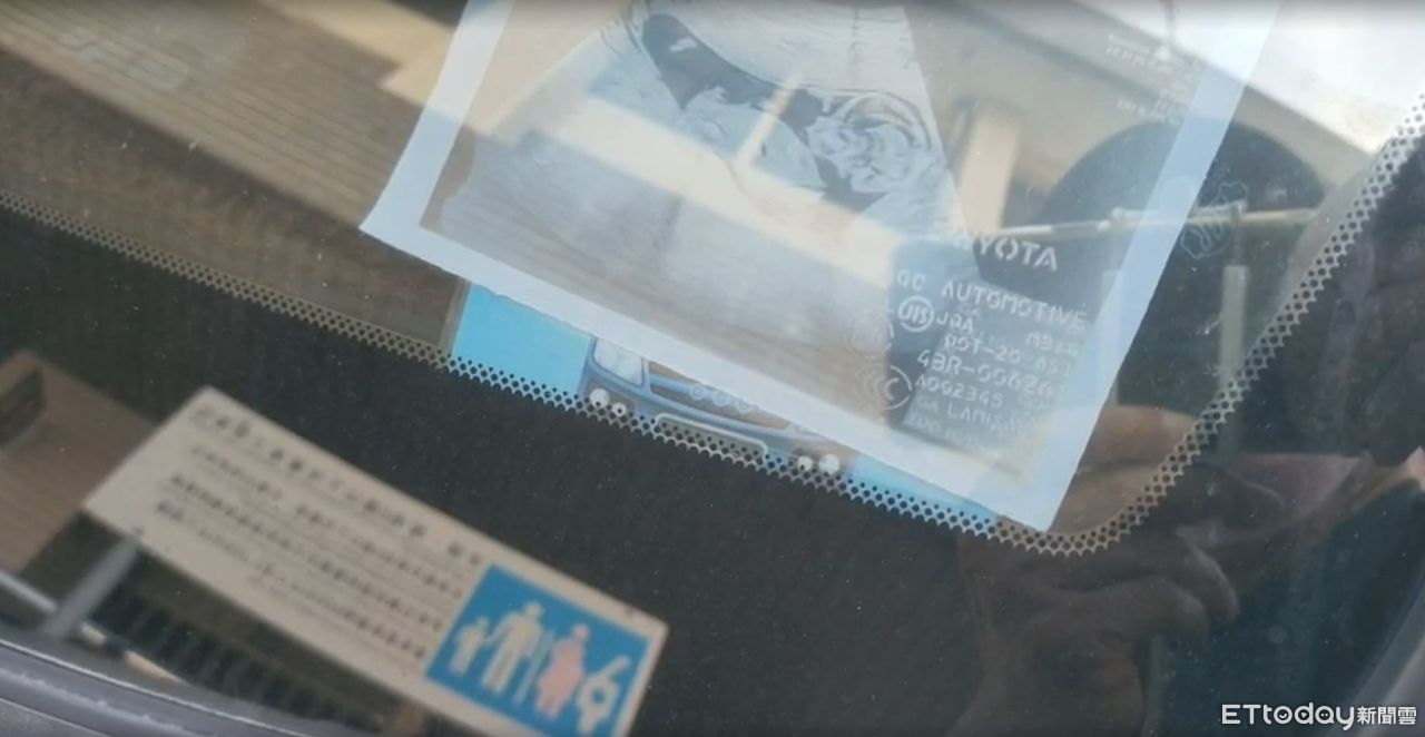 ▲許男在擋風玻璃上貼超音波照片,停在親子停車位後仍遭開罰。(圖/警方提供)