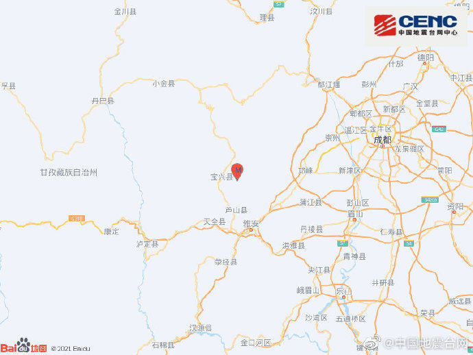 四川雅安市今(1)日連兩震,蘆山縣17時在(北緯30.37度,東經102.94度)發生震度6.1級地震,震源深度17公里;寶興縣17時03分發生震度4.5級地震,震源深度18公里。據了解,震中20公里範圍內人口數約7萬人,50公里範圍內約117萬人,100公里範圍內約789萬人。
