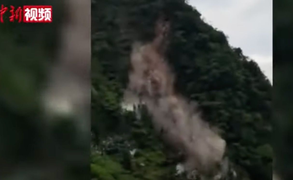 ▲周圍山體土石陸續崩塌。(圖/翻攝 南方都市報)