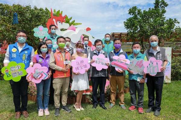 ▲桃園市長鄭文燦和啦啦隊女神孟潔,為活動揭開序幕。(圖/農業局提供)