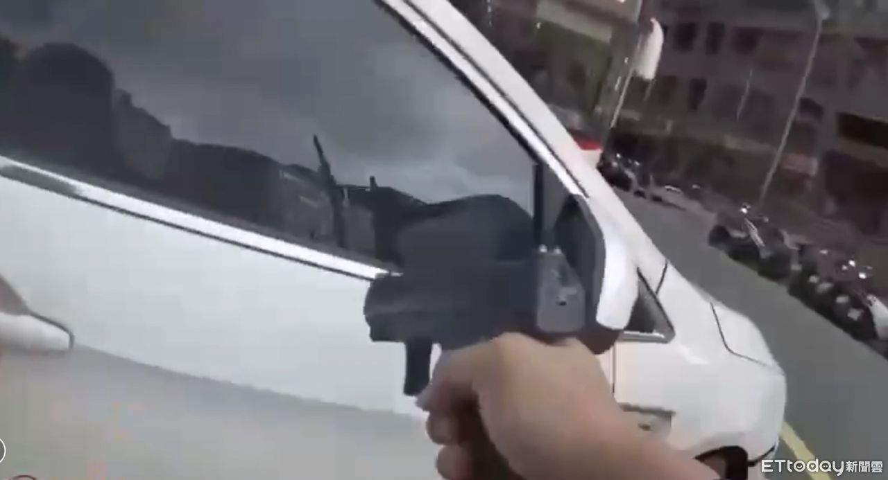 警方當街展開追逐,沒想到許姓駕駛竟倒車衝撞,夾擊陳姓警員,導致陳員左側肩關節挫傷、左側膝關節擦挫傷,另名警員立刻朝車頭以及右前輪開槍。